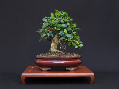 acercarse excesivamente al suelo. Los continuos pinzados y algunos defoliados han dado sus frutos, y el árbol aparece más denso y con la hoja más pequeña. Está previsto para el próximo año (2009) transplantarlo a una maceta con un menor tamaño, más acorde con el del árbol. |