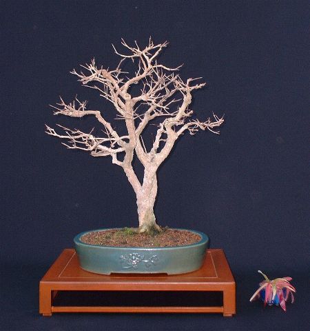 Diciembre 2006 El año pasado (2005) fue transplantado a una maceta esmaltada tokoname. Se sigue trabajando con la poda para para su formación. |