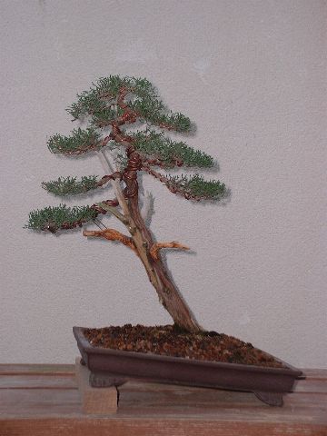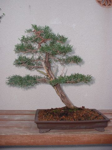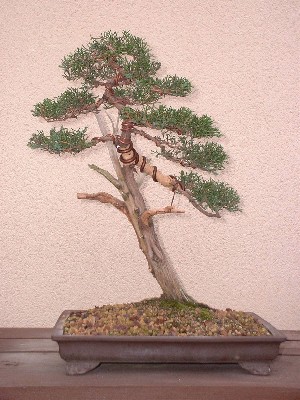 Noviembre 2006. Después de un tiempo de relativo abandono este es su estado, el año pasado la tuve que recortar bastante, ya que el verde se estaba alejando del principio de las ramas y era necesario rejuvenecer el follaje. Este año ya estaba mejor por lo que decidí que necesitaba un cambio en su diseño, que se merecía mayor dedicación... |