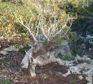 Marzo 2002 en su lugar de origen. La recolección no fue complicada ya que el terreno rocoso impide que se desarrollen largas raíces, disponiendo de un buen sistema radical corto. |