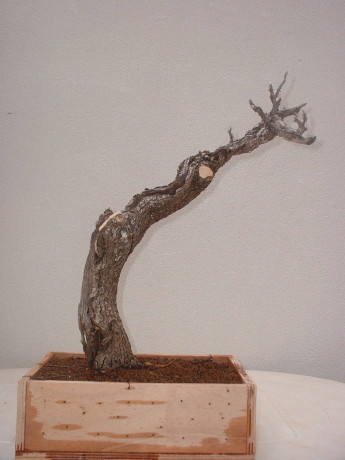Así quedo tras la poda y plantado en la posición adecuada para el modelado, ahora viene la angustiosa espera de la brotación y la incertidumbre que ello trae. Acaban todos brotando. |